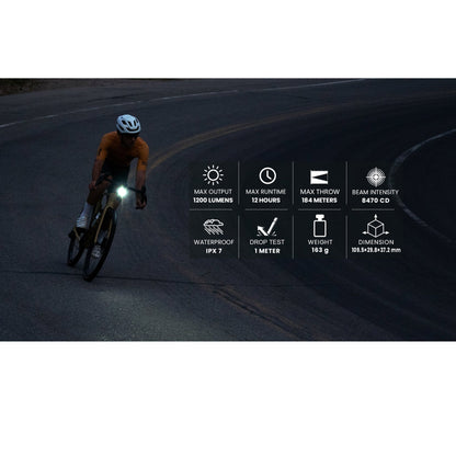 Introducing the ALLTY 1200, a high-performance bicycle light that boasts a dazzling 1200-lumen output at its peak. Engineered with a next-generation anti-glare lens, it masterfully balances brightness and shadow, dramatically minimizing visual distractions while augmenting visibility between cyclists and theirsurroundings, be it pedestrians or vehicles, ensuring a safe journey across all terrains.
