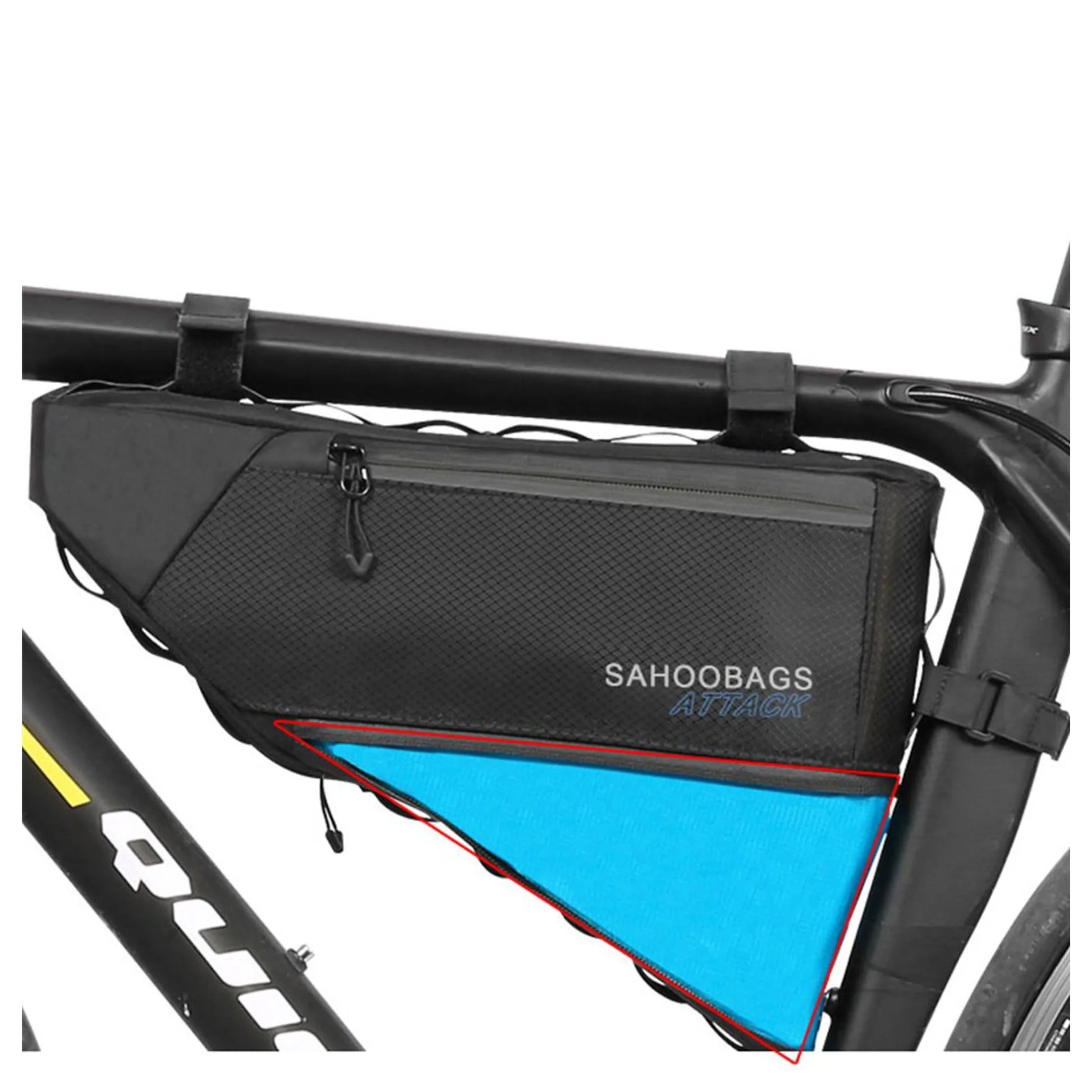 The versatile Sahoo Frame Bag can be mounted on the top tube or seat tube. Easy tooless velcro mounts won't scratch your frame. The full round thick foam cushion ensures bag shaping and protection.